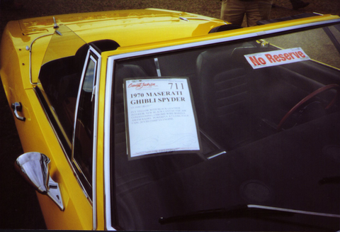 This example was at the Barrett-Jackson Collector Car Auction in Scottsdale, Arizona in 2004. It sold for $122,000. In the lot, it was parked next to a yellow Ferrari Daytona Spyder.